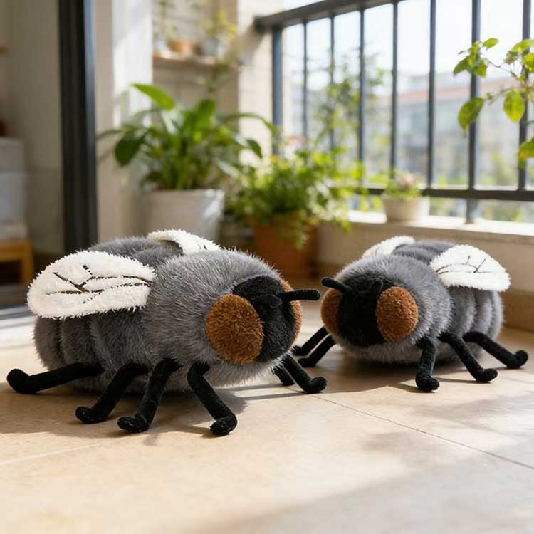 Ta modna pluszowa mucha od producenta YSD została starannie zaprojektowana pod względem wyglądu i rozmiaru. Występuje w dwóch klasycznych kolorach: wersja szara odtwarza naturalną fakturę muchy, wyglądając realistycznie, ale nie przerażająco, natomiast wersja brązowa ma bardziej uroczą atmosferę i łagodniejszy odcień. Rozmiar wynosi 23 cm, a waży tylko 0,12 kg, dzięki czemu jest lekki i łatwy do przenoszenia. Niezależnie od tego, czy zostanie zawieszony na torbie jako zawieszka, czy umieszczony na biurku lub stoliku nocnym jako dekoracja, zajmuje bardzo mało miejsca. Skrzydełka przedstawiono delikatnym haftem, korpus jest równomiernie i całkowicie wypchany, miękki, a brzegi starannie zszyte. Ogólnie rzecz biorąc, jest wyjątkowy i trwały. Niezależnie od tego, czy chodzi o zakup detaliczny, czy hurtowy, klienci będą mieli poczucie, że otrzymują doskonały stosunek jakości do ceny.