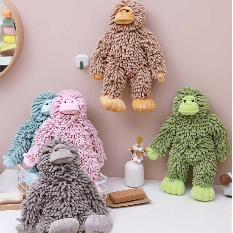 Ten pluszowy ręcznik do rąk Gorilla jest wykonany z niezawodnego materiału. Używamy wysokiej jakości kryształowej ultramiękkiej tkaniny, która jest delikatna i gładka, przyjazna dla skóry i nie podrażniająca, nawet dla delikatnej skóry dzieci. Co więcej, tkanina ta charakteryzuje się doskonałą absorpcją wody. Wycierając dłonie, wysycha natychmiast, nie pozostawiając zacieków, co jest znacznie lepsze niż zwykłe ręczniki do rąk. Jednocześnie tkanina ma dobrą odporność na zużycie. Po wielokrotnym praniu nie mechaci się, nie gubi włosów ani nie odkształca się, a ponadto ma długą żywotność, dzięki czemu współczynnik wykupu przez klientów jest naturalnie wysoki. Ponadto tkanina przeszła kontrole bezpieczeństwa, jest bezwonna i wolna od szkodliwych substancji oraz spełnia krajowe standardy produktu klasy A. Kupując w celu odsprzedaży, nie musisz się martwić kwestiami zgodności z jakością.